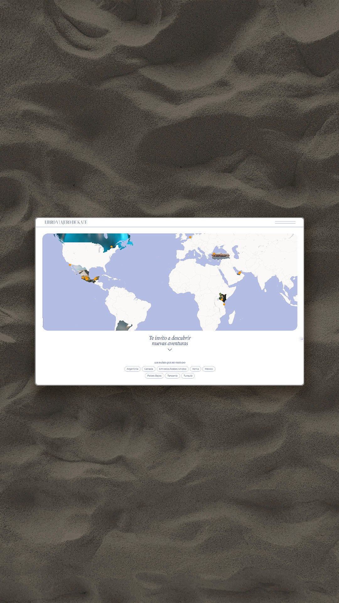 Los viajes son no lineales, visuales y emocionales. Un blog típico basado en plantillas no expresaría la marca de Kate: aventurera, generosa, humana.